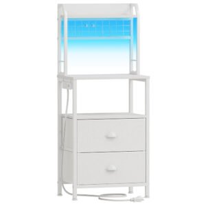 Nightstand with Charging Station – Tall Bedside Table with LED Lights